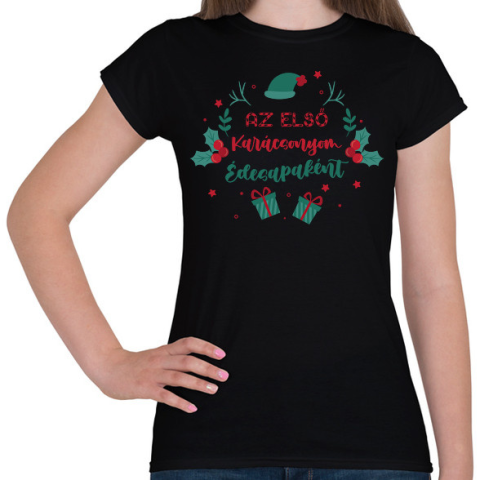 1 kép PRINTFASHION AZ első Karácsonyom - Apa - Női póló - Fekete