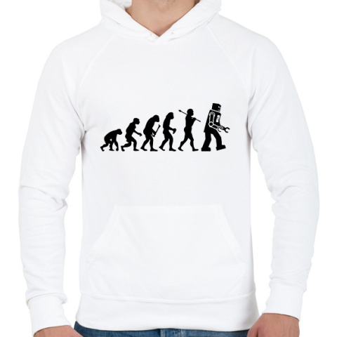 1 kép PRINTFASHION Az ember evolúciója - fekete - Férfi kapucnis pulóver - Fehér