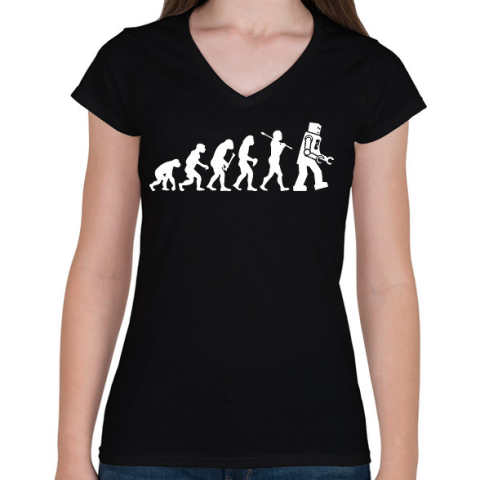 1 kép PRINTFASHION Az emberiség evolúciója - fehér - Női V-nyakú póló - Fekete