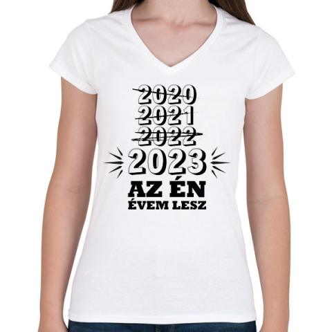 1 kép PRINTFASHION Az én évem lesz - Női V-nyakú póló - Fehér