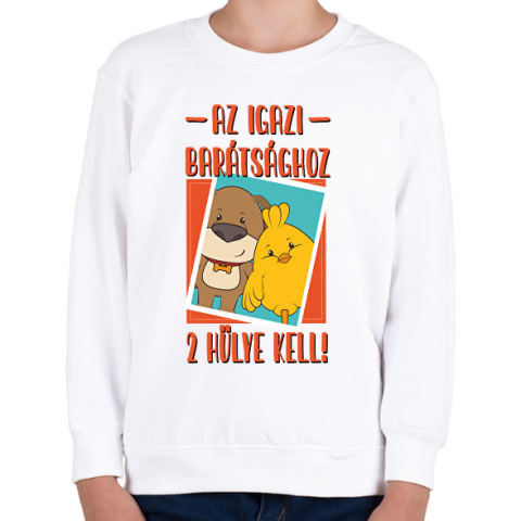 1 kép PRINTFASHION Az igazi barátsághoz 2 hülye kell - Gyerek pulóver - Fehér