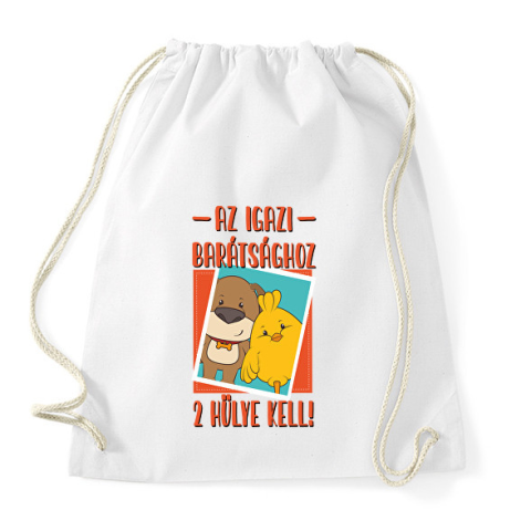 1 kép PRINTFASHION Az igazi barátsághoz 2 hülye kell - Sportzsák, Tornazsák - Fehér