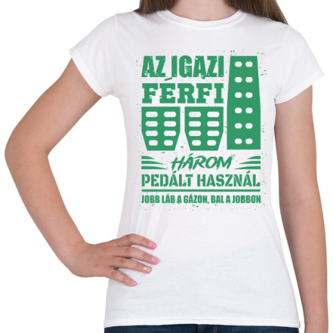 1 kép PRINTFASHION Az igazi férfi három pedált használ - Női póló - Fehér