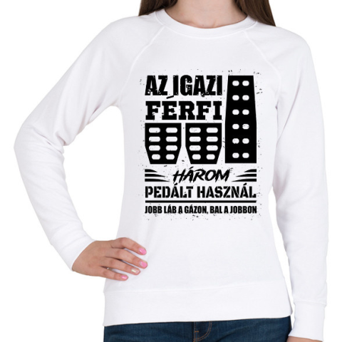 1 kép PRINTFASHION Az igazi férfi három pedált használ - Női pulóver - Fehér