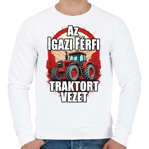 1 kép PRINTFASHION Az igazi férfi traktort vezet - Férfi pulóver - Fehér