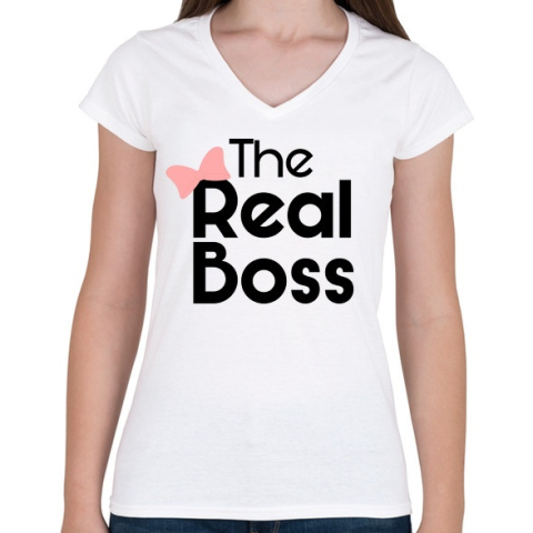 1 kép PRINTFASHION Az igazi főnök! - Női V-nyakú póló - Fehér