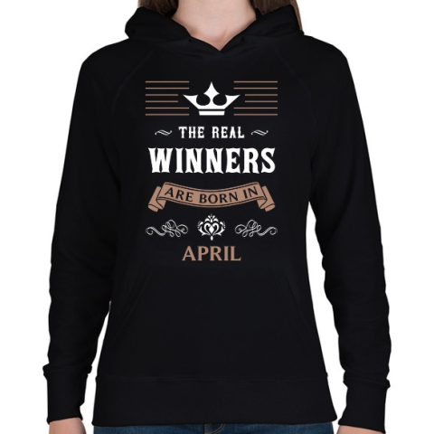 1 kép PRINTFASHION Az igazi győztesek áprilisban születtek - Női kapucnis pulóver - Fekete