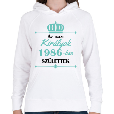 1 kép PRINTFASHION Az igazi királyok - Évszámmal - Női kapucnis pulóver - Fehér