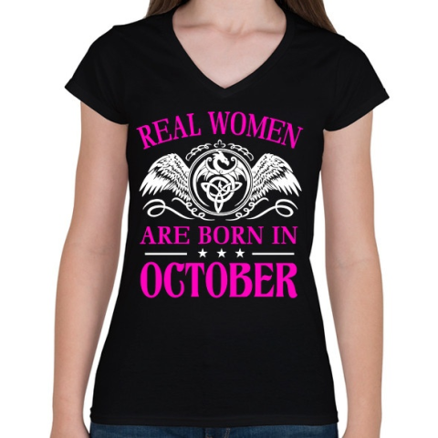 1 kép PRINTFASHION Az igazi nő októberben született - Női V-nyakú póló - Fekete