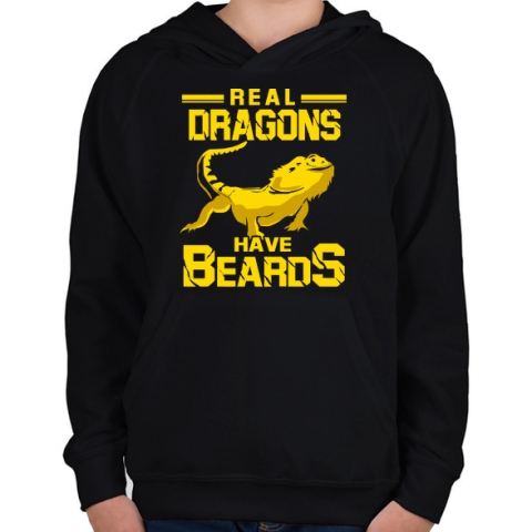 1 kép PRINTFASHION Az igazi sárkányoknak van szakálla - Gyerek kapucnis pulóver - Fekete