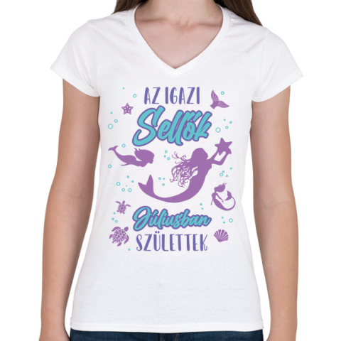 1 kép PRINTFASHION Az igazi sellő - Hónappal - Női V-nyakú póló - Fehér