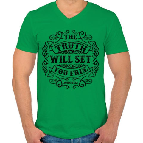 1 kép PRINTFASHION Az igazság szabaddá tesz - Férfi V-nyakú póló - Zöld