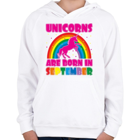 1 kép PRINTFASHION Az unikornisok szeptemberbe születtek - Gyerek kapucnis pulóver - Fehér