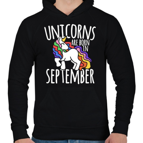 1 kép PRINTFASHION Az unikornisok szeptemberben születtek - Férfi kapucnis pulóver - Fekete