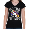 1 kép PRINTFASHION Az unikornisok szeptemberben születtek - Női V-nyakú póló - Fekete