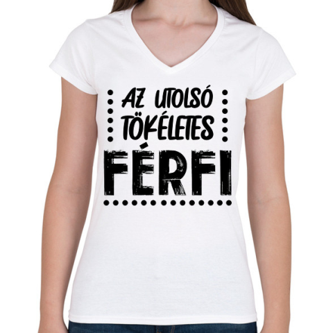 1 kép PRINTFASHION Az utolsó tökéletes férfi - Női V-nyakú póló - Fehér
