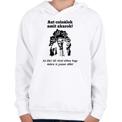 1 kép PRINTFASHION azt csinálok amit akarok - Gyerek kapucnis pulóver - Fehér