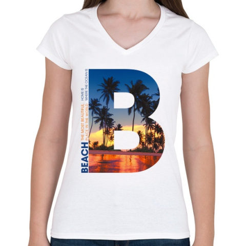 1 kép PRINTFASHION B BEACH - Női V-nyakú póló - Fehér