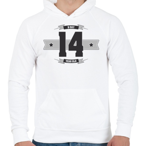 1 kép PRINTFASHION b-day-14-dark-lightgrey - Férfi kapucnis pulóver - Fehér