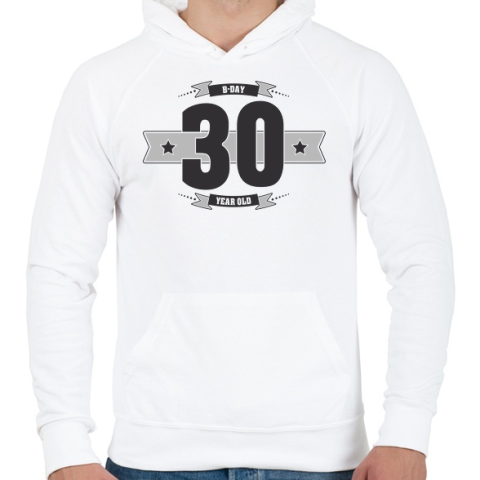 1 kép PRINTFASHION b-day-30-dark-lightgrey - Férfi kapucnis pulóver - Fehér