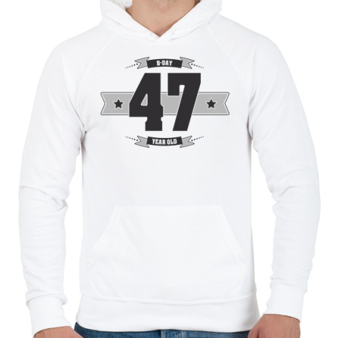 1 kép PRINTFASHION b-day-47-dark-lightgrey - Férfi kapucnis pulóver - Fehér