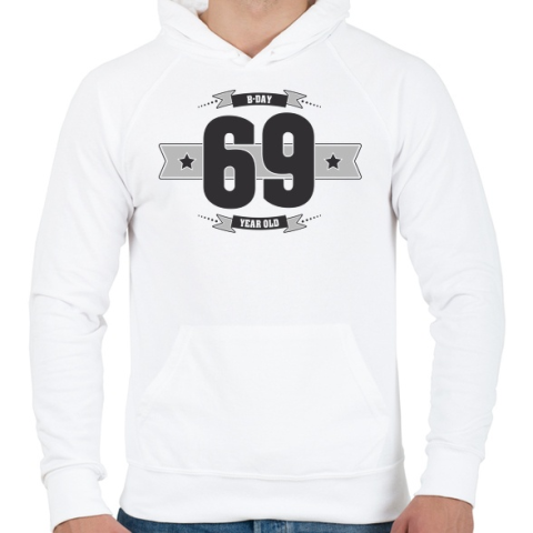 1 kép PRINTFASHION b-day-69-dark-lightgrey - Férfi kapucnis pulóver - Fehér