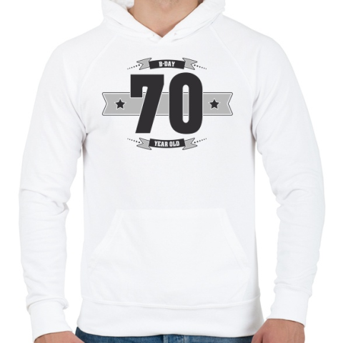 1 kép PRINTFASHION b-day-70-dark-lightgrey - Férfi kapucnis pulóver - Fehér