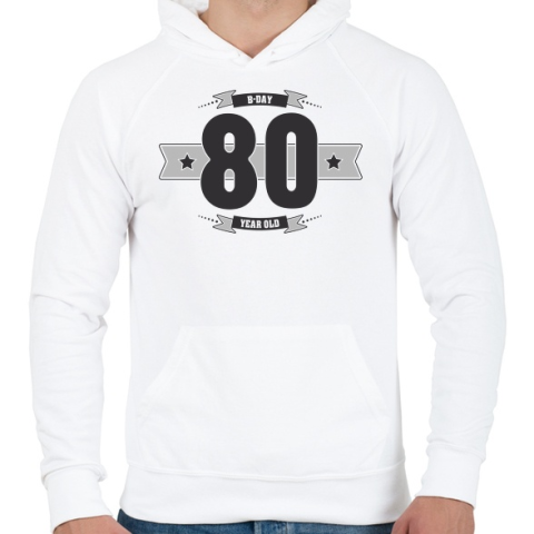 1 kép PRINTFASHION b-day-80-dark-lightgrey - Férfi kapucnis pulóver - Fehér