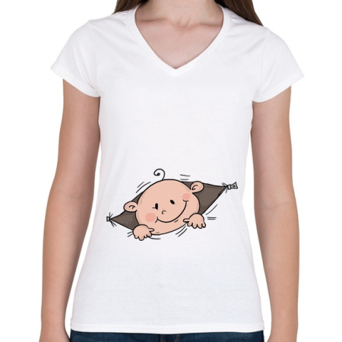 1 kép PRINTFASHION Babaváró - Női V-nyakú póló - Fehér