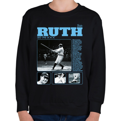 1 kép PRINTFASHION Babe Ruth - baseball - Gyerek pulóver - Fekete