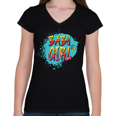 1 kép PRINTFASHION Baby girl - Női V-nyakú póló - Fekete