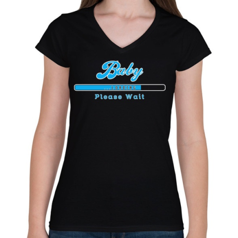 1 kép PRINTFASHION baby-loading-blue-white - Női V-nyakú póló - Fekete
