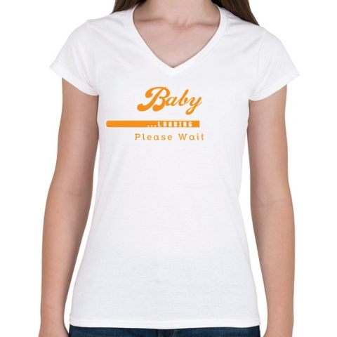 1 kép PRINTFASHION baby-loading-orange-white - Női V-nyakú póló - Fehér