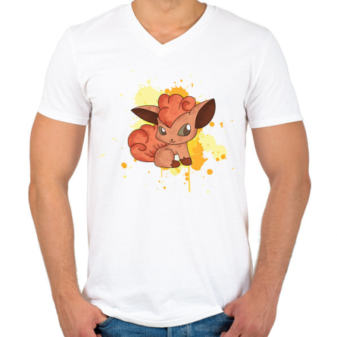 1 kép PRINTFASHION Baby Vulpix - Férfi V-nyakú póló - Fehér