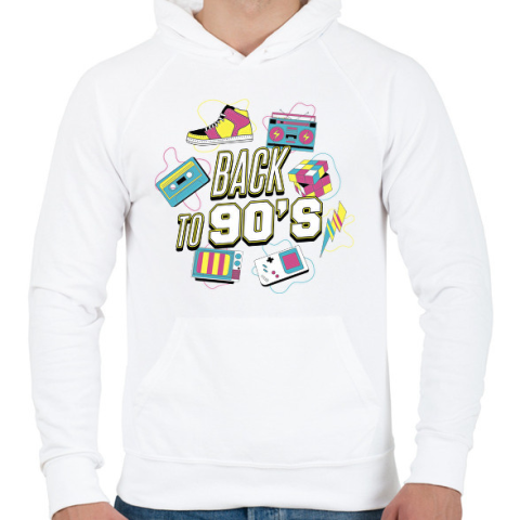 1 kép PRINTFASHION Back to the 90's - Férfi kapucnis pulóver - Fehér