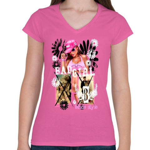 1 kép PRINTFASHION BAD GIRL - Női V-nyakú póló - Rózsaszín