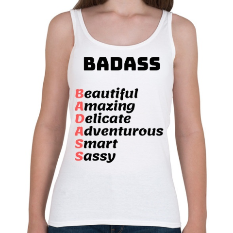 1 kép PRINTFASHION BADASS - Beautiful Amazing Delicate Adventurous Smart Sassy - Női atléta - Fehér
