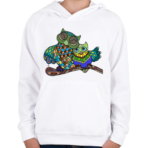 1 kép PRINTFASHION Baglyok - Gyerek kapucnis pulóver - Fehér
