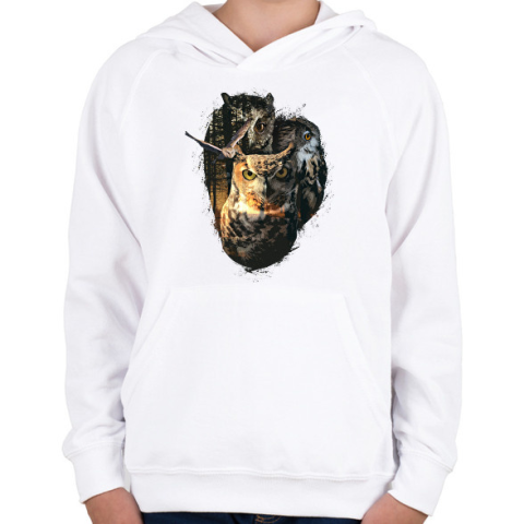 1 kép PRINTFASHION Baglyok - Gyerek kapucnis pulóver - Fehér