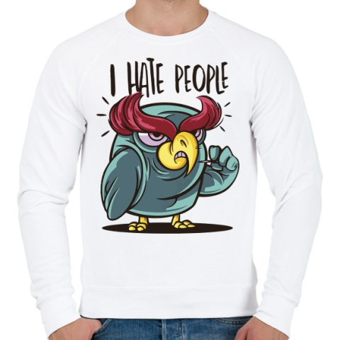 1 kép PRINTFASHION Bagoly - antIszociális - hate people - Férfi pulóver - Fehér