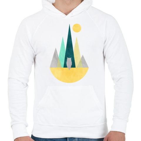 1 kép PRINTFASHION Bagoly és hegyek - Férfi kapucnis pulóver - Fehér