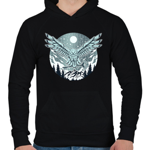 1 kép PRINTFASHION bagoly - Férfi kapucnis pulóver - Fekete