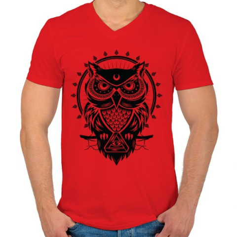 1 kép PRINTFASHION Bagoly - Férfi V-nyakú póló - Piros