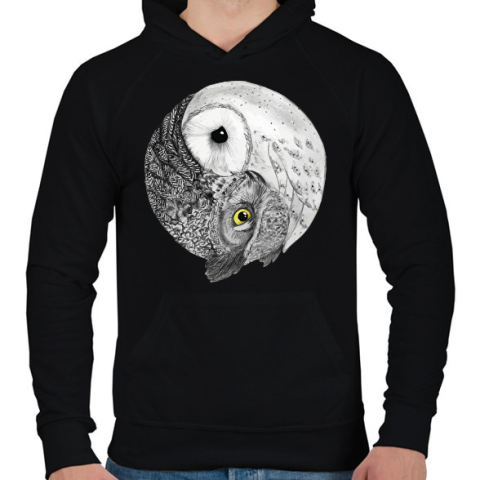1 kép PRINTFASHION Bagoly jin jang - Férfi kapucnis pulóver - Fekete