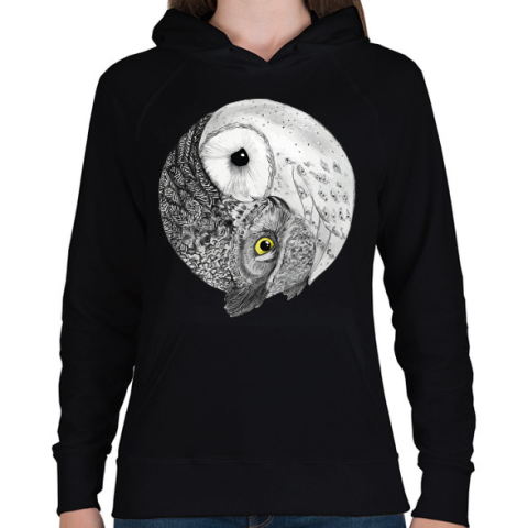 1 kép PRINTFASHION Bagoly jin jang - Női kapucnis pulóver - Fekete
