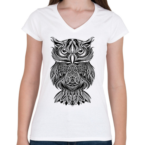 1 kép PRINTFASHION Bagoly - Női V-nyakú póló - Fehér