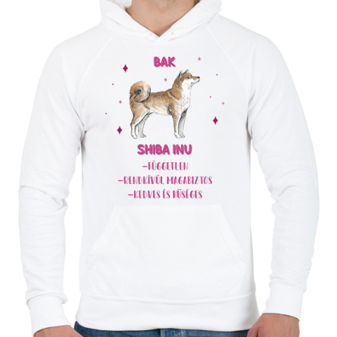 1 kép PRINTFASHION Bak - Shiba inu - Férfi kapucnis pulóver - Fehér