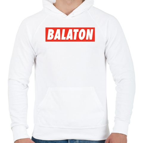 1 kép PRINTFASHION Balaton - Piros háttér - Férfi kapucnis pulóver - Fehér