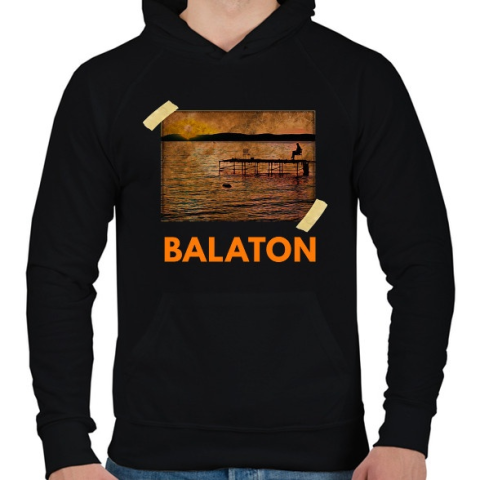1 kép PRINTFASHION balatoni naplemente - Férfi kapucnis pulóver - Fekete
