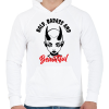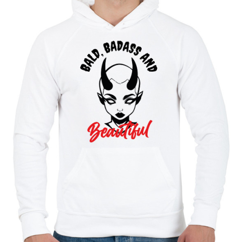 1 kép PRINTFASHION Bald, badass & beautiful - Férfi kapucnis pulóver - Fehér